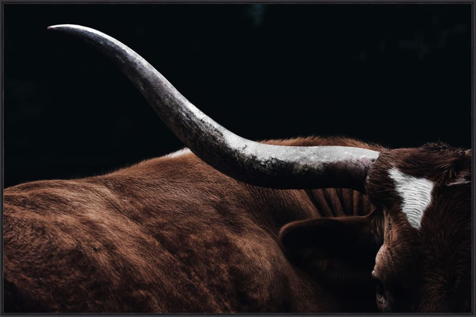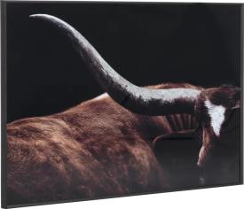 Cette photo de la collection COCOmaison est dangereusement stylée ! Le tableau RODEO représente un énorme taureau qui, avec ses impressionnantes cornes, veille sur votre séjour. Le tableau RODEO mesure 120 x 80 cm, est fabriqué avec 85% de verre et 15% de plastique et est doté d'un cadre. Les teintes sombres confèrent une touche mystérieuse à ce tableau et conviennent très bien à tous les intérieurs.