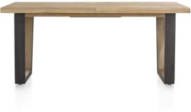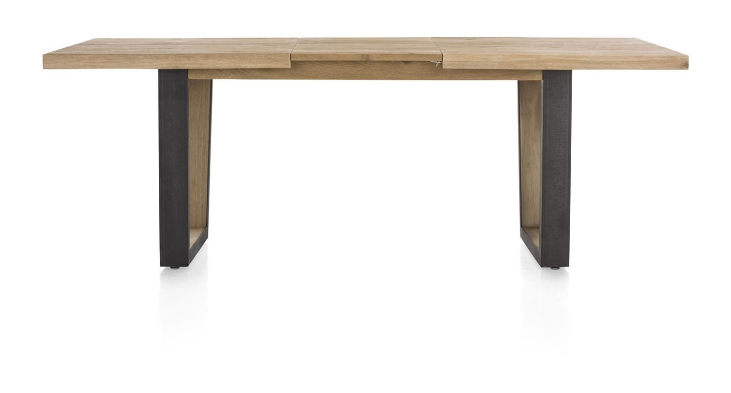 Les tables extensibles sont extrêmement pratiques lorsque vous recevez régulièrement des invités, mais que vous n’avez pas la place pour une grande table à manger. Cette table à manger extensible moderne fait partie de la collection Brasilia et mesure 160 cm x 100 cm. Son plateau en bois aux bords effets tronc d'arbre s’allonge aisément de 50 cm. Ce modèle se distingue par son piètement industriel robuste en U. Les pieds allient métal et bois, pour un élégant design rustique.