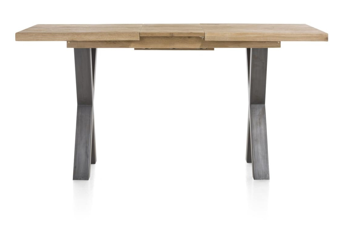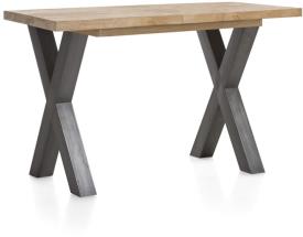 Cette table de bar contemporaine de la collection Brasilia signée H&H présente une allure épurée. Ce modèle de 140 cm x 90 cm permet d’allonger aisément de 50 cm le plateau en bois. Il se distingue par son piètement métallique en X, qui lui donne un style à la fois robuste et moderne.